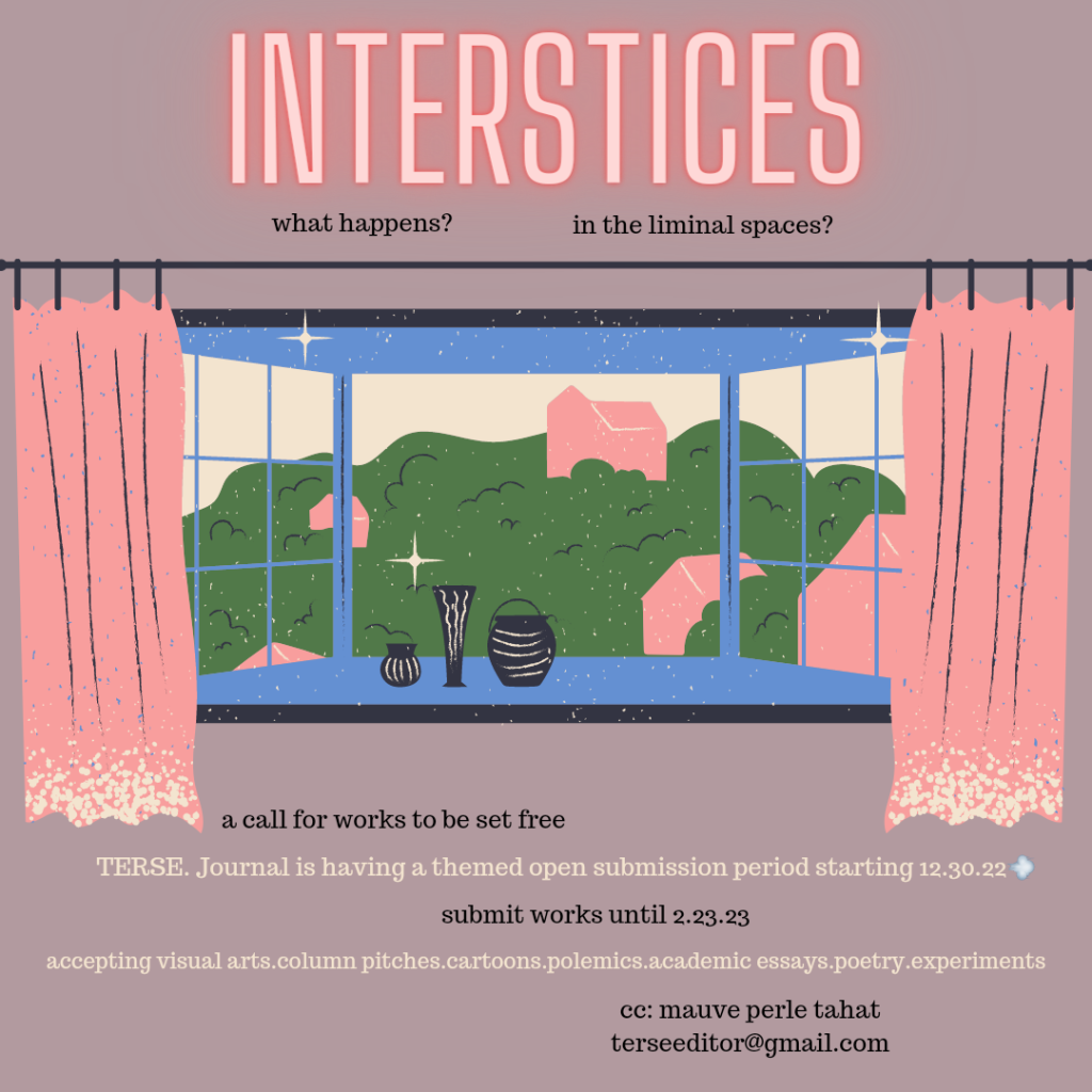 consider submitting to our current call for works, curated by founding editor, Mauve Perle Tahat.